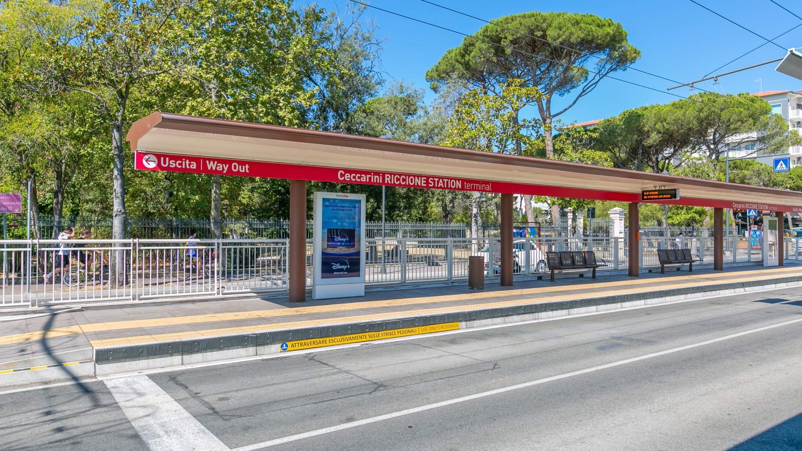 Der Metromare ist ein innovatives öffentliches Verkehrssystem mit elektrischer Traktion, das die Städte Rimini und Riccione verbindet. Es verläuft parallel zur Küste und legt eine Strecke von ca. 9,8 km in 23 Minuten zurück.