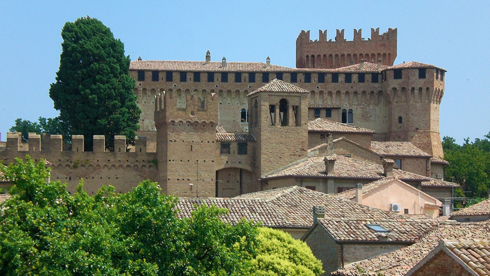L’antico borgo medievale di Gradara, circondato dalle sue mura merlate, sorge a pochi chilometri dalla Riviera Adriatica, al confine tra Emilia Romagna e Marche. Dal punto più alto del colle (142 m sul livello del mare), la rocca domina la manciata di case che formano il villaggio.